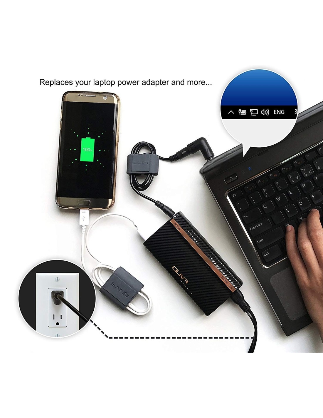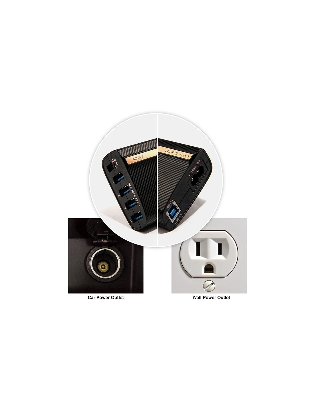 ¿Necesita conectar periféricos a su computadora portátil? Eso no es un problema ya que el Q-PRO 4 en 1 también funciona como un adaptador para computadora portátil. Simplemente conecte sus periféricos a uno de los 4 puertos de transferencia de datos USB. El Q-PRO 4 en 1 se puede conectar a la batería de automóvil de su automóvil, lo que es perfecto para vendedores y otras personas que se desplazan constantemente.