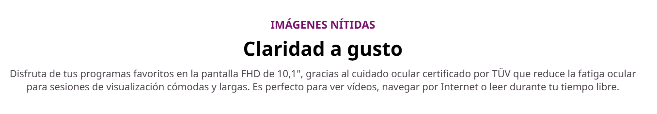 Disfruta de horas de streaming sin interrupciones con una tablet diseñada para adaptarse a cualquier estilo de vida. El elegante diseño totalmente metálico luce genial y se siente cómodo. Disfruta de tus programas favoritos con una claridad impresionante gracias a una pantalla FHD de 10,1" y dos altavoces sintonizados con Dolby Atmos. El procesador MediaTek Helio G85 garantiza una multitarea fluida.